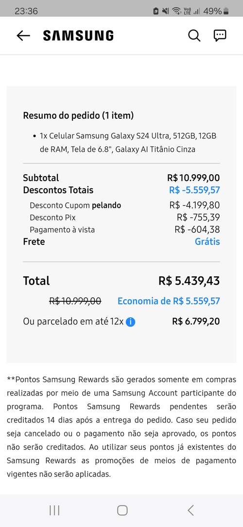 peguei s23 ultra versao 512gb por 3.800 em 12x de 300 e pouco acho que fiz um pessimo negocio, visto que ele ja ta caindo de preço, ates que perguntem aonde que consegui, foi no site samsung para empresas. ja nao tem mais este preço hoje, mas eu me sinto que perdi dinheiro. infelizmente