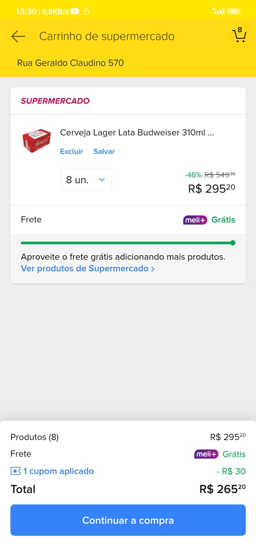 Daí você paga com mercado crédito e a compra vai pra 50