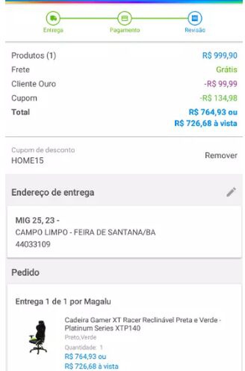 [APP - Cliente Ouro] Cadeira Gamer XT Racer Reclinável Preta e Verde - Platinum Series XTP140| R$727