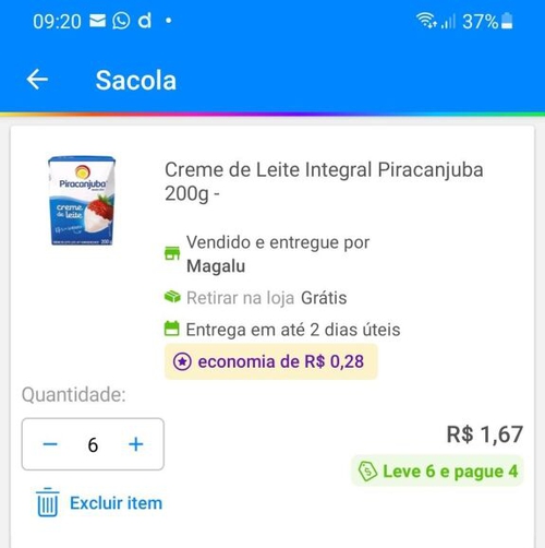 [APP + CLIENTE OURO] Creme de Leite Integral Piracanjuba - 200g | R$1,67
