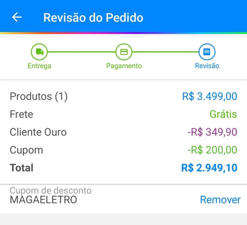 2949 aqui, ffu no app + sou ouro +apliquei cupom . Tem mais alguma coisa?