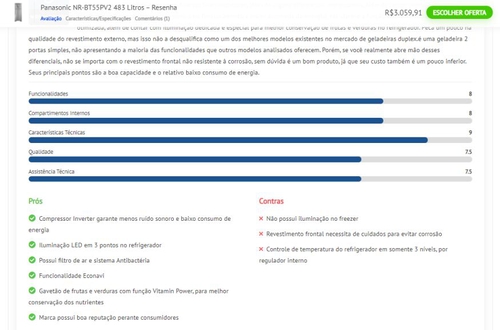[App + Cliente ouro] Geladeira Panasonic Frost Free Duplex 483L | R$2722