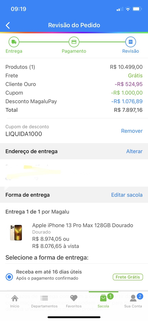 Azul não entra desconto MagaluPay, prazo de entrega bem acima do normal...