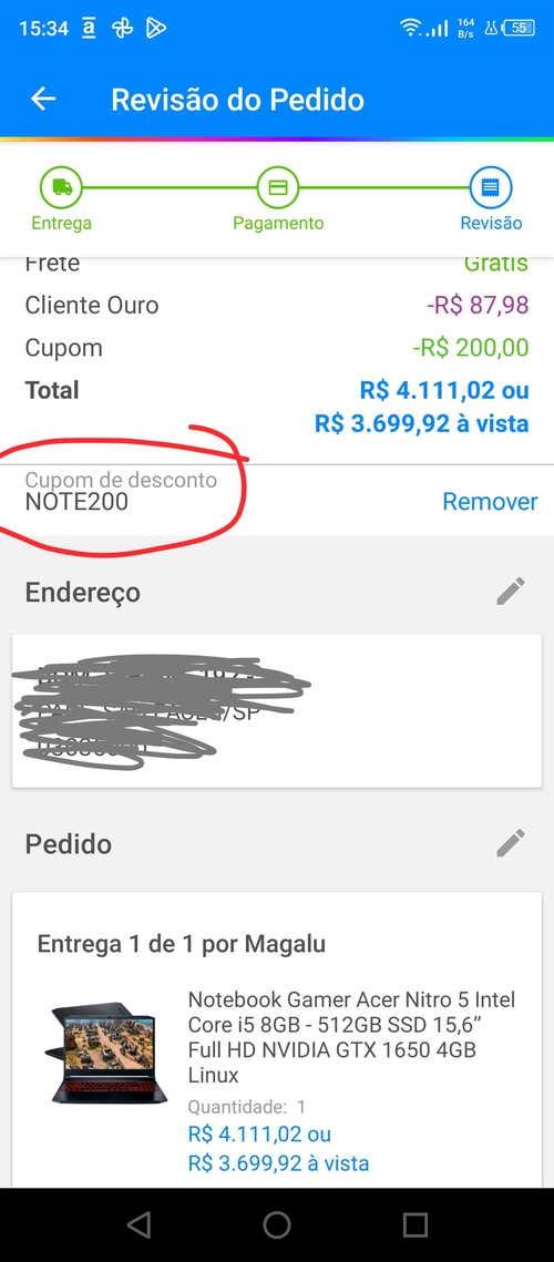 App Cliente Ouro cupom NOTE200 R$ 3.699