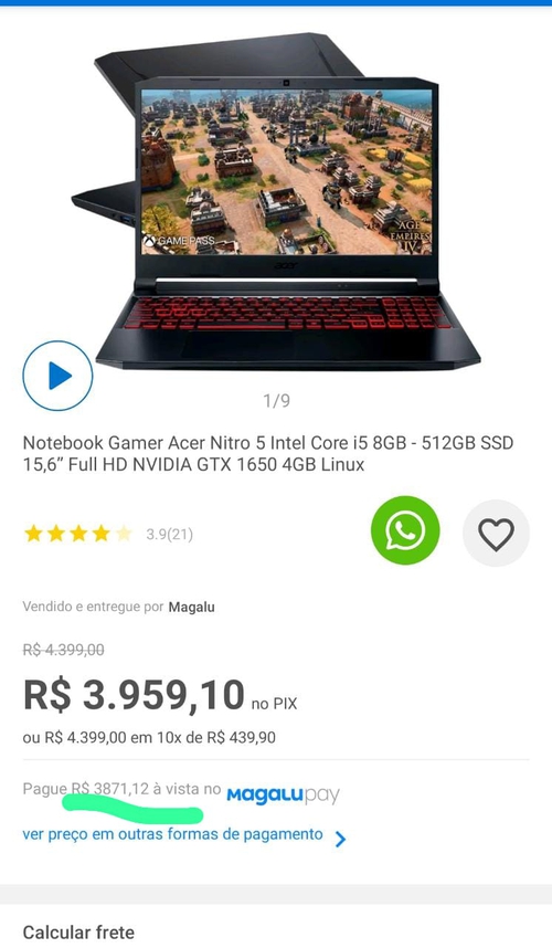 Promoção boa, para quem tem dinheiro vivo, e não liga se vem com Linux e tela de 15.6.