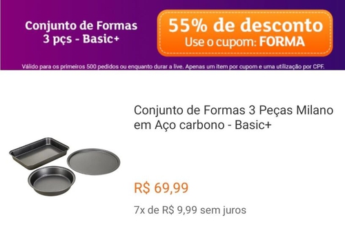 [APP] Conjunto de Formas 3 Peças Milano em Aço Carbono - Basic+ | R$30
