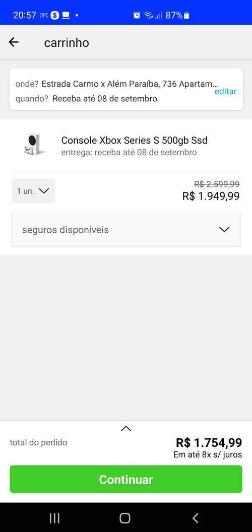 Deu certo amigo muito obrigado, comprei agora 21h42, tem que ser pelo app e usar o filtro pra aparecer somente vendido pelo submarino. Obrigado mesmo, forte abraço.