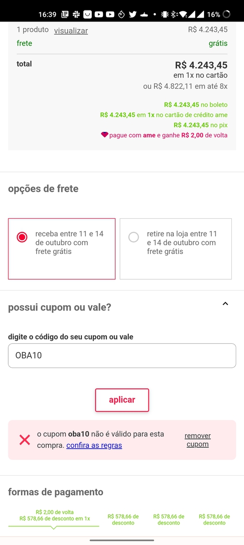 Pelo App realmente o cupom está funcionando! Será que vale com conta da loja que está vendendo? BringIT.... vi o comentário do Reclame aqui, mas se reparar só tem 147 casos e apenas de março de 2022 para cá...