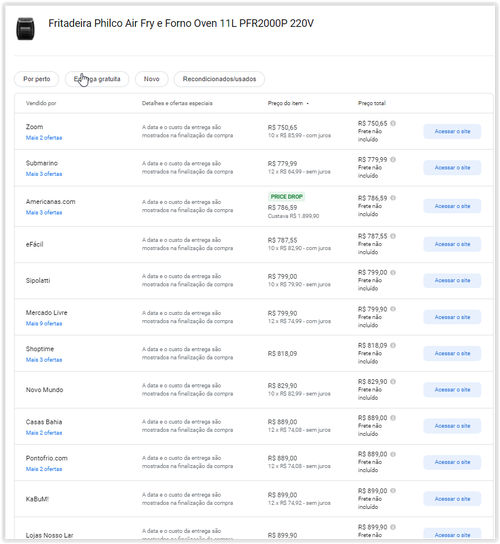 Menor preço segundo o Google Shopping