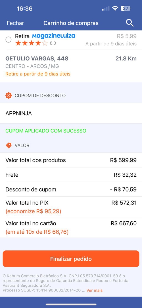 Somente pelo aplicativo da Kabum com uso do cupom.