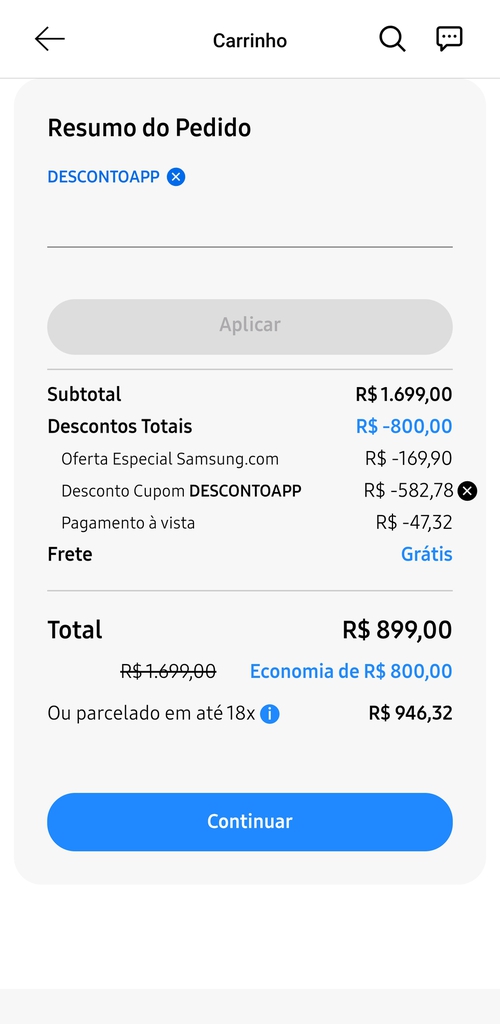 Somente app, cupom: DESCONTOAPP