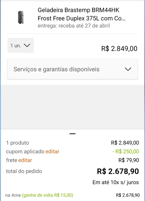 Cupom: PRESENTE250 (selecionar vendedor BRASTEMP NO APP)
