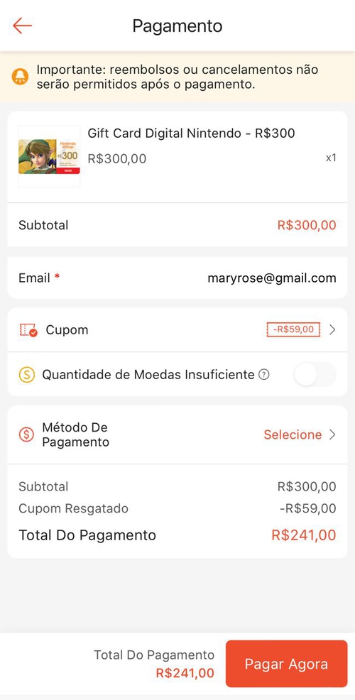 Clique em comprar agora, já no carrinho clique em selecione ou insira o codigo, e selecione o cupom resgatado anteriormente
