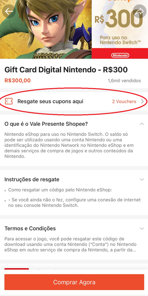 Após clique em resgatar seus cupons aqui, igual ao print abaixo
