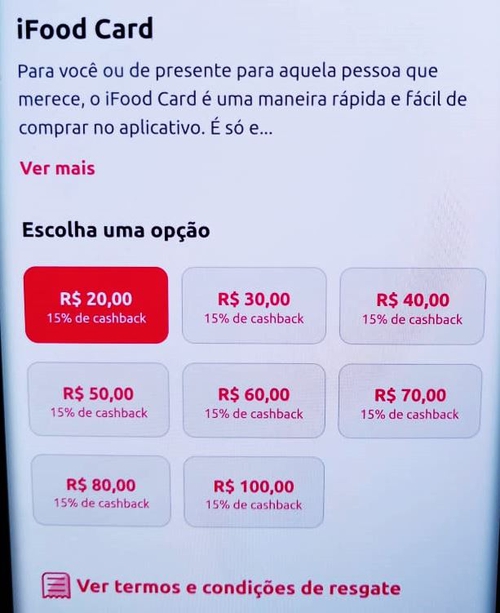 Se na hora de escolher o valor da recarga, não aparecer a porcentagem do cashback embaixo, não está mais ativa a promoção.