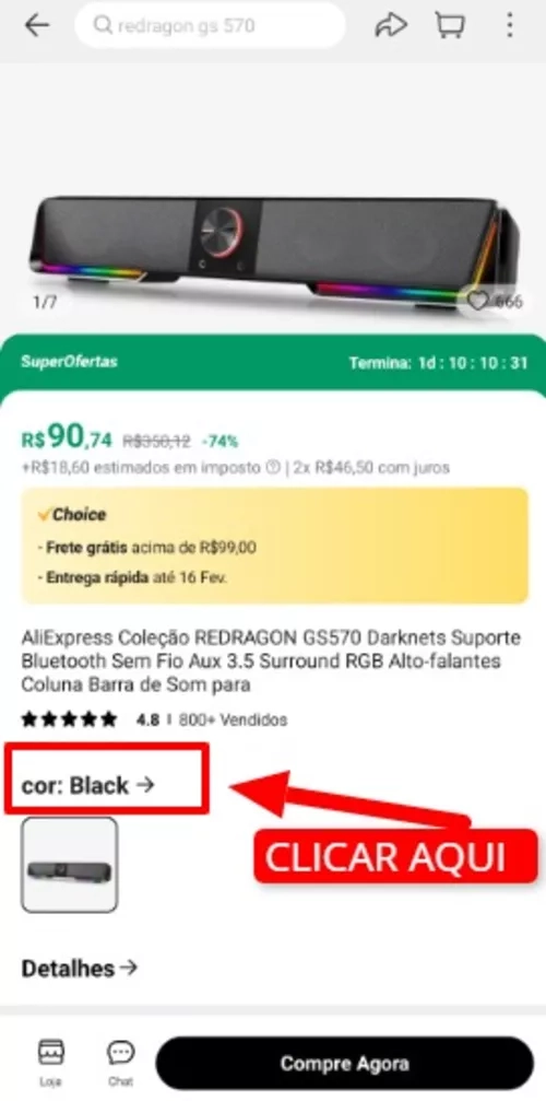 *Se Mesmo Assim Não Aparecer, Volte Para a Opção de Clicar na Cor Produto (passo a passo 2) e Adicione o máximo de produtos/3, e siga para o carrinho