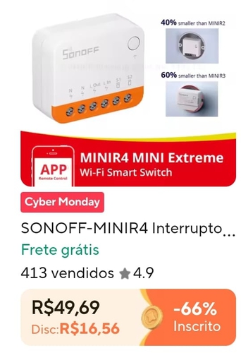 【 App】 Interruptor WiFi 2 Vias Relé Voz SONOFF MINIR4