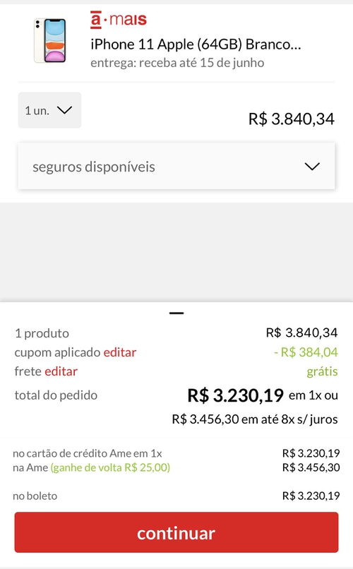 [APP] iPhone 11 Apple (64GB) Branco Tela 6,1" 4G Câmera 12MP iOS
