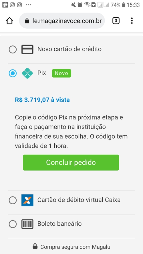 Consegui por R$ 3.308 a vista magalu pay e cliente ouro + cupom