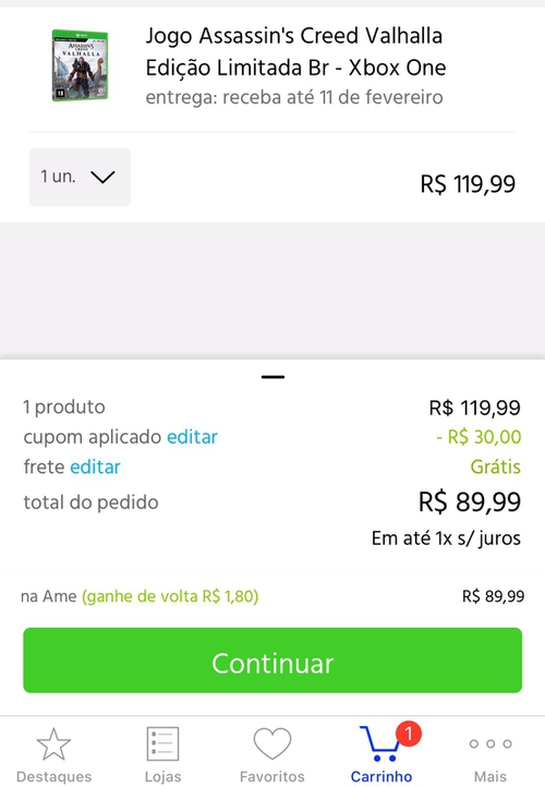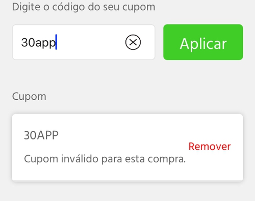 Aqui desconto de 30 n foi mais o cupom de 20 rodou