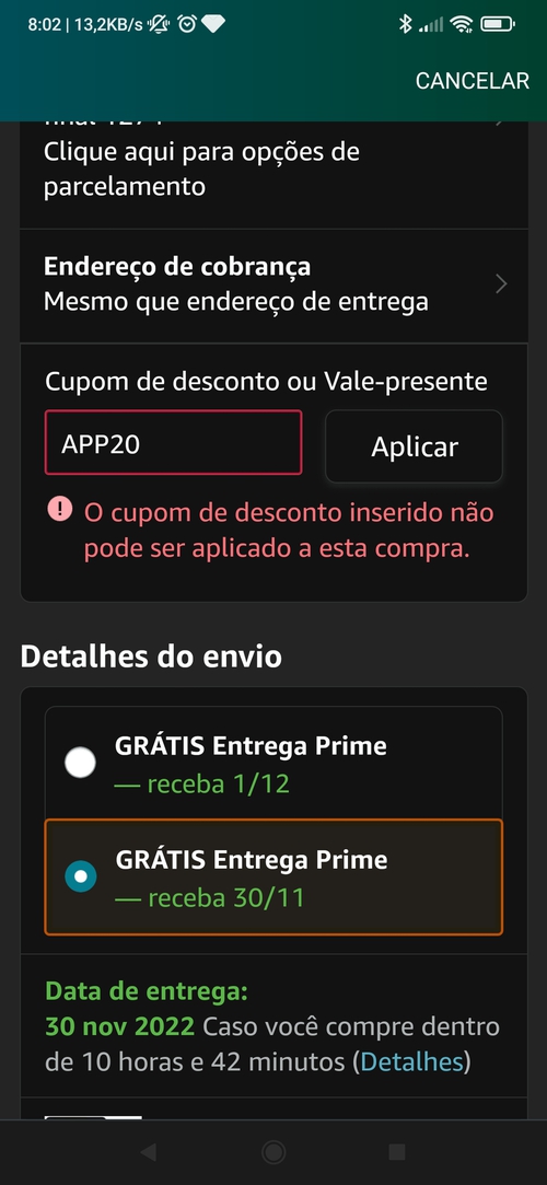 Compre no APP com cupom para ter 20 off além do preço de Black friday.