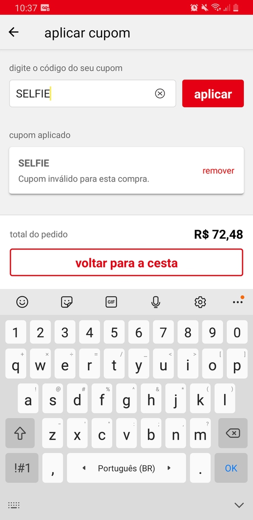 Cupom inválido, mesmo pelo app.