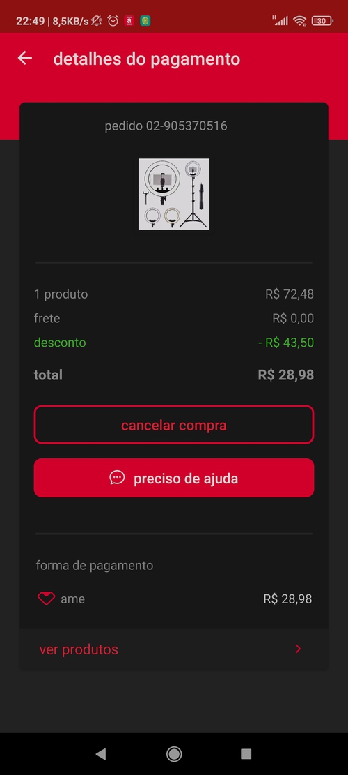 Vale? Consegui pelo app e frete R$ 4.00 para RJ