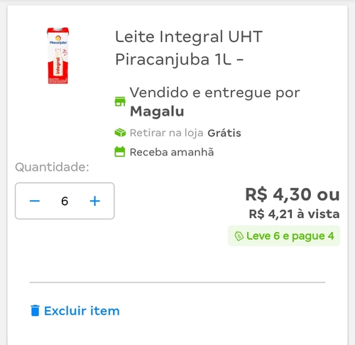 Valor a vista levando acima de 6 unidades na promoção leve 6 e pague 4