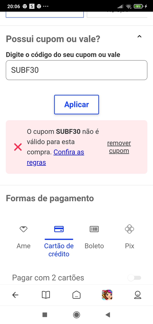 Cupom inválido aqui fazendo o que disse