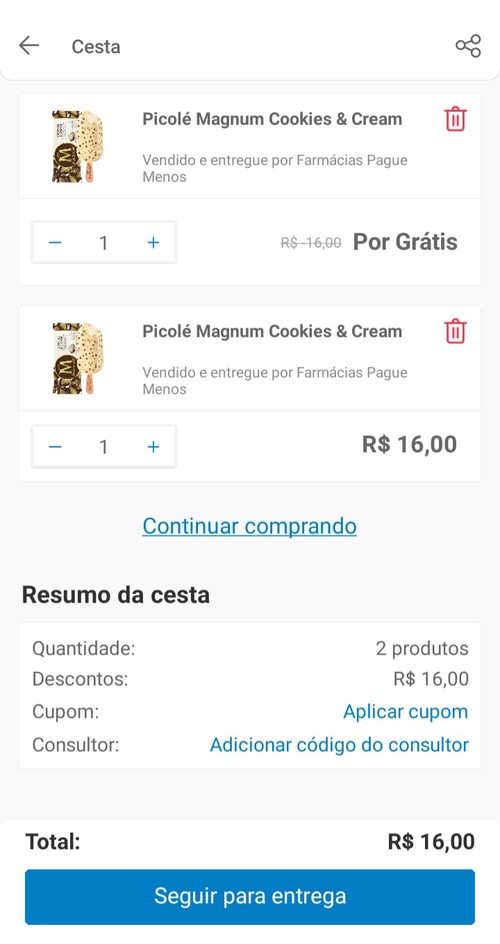 Válido apenas no APP. Necessário colocar no carrinho 2 itens participantes do mesmo sabor.