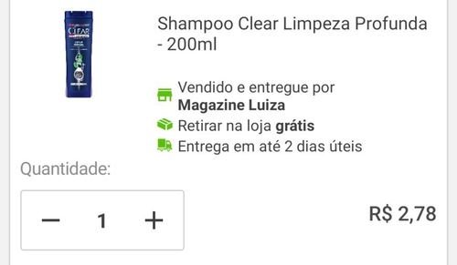 [APP Magalu] Shampoo anti caspa Clear Men limpeza profunda 200ml com retirada grátis - R$ 2,78