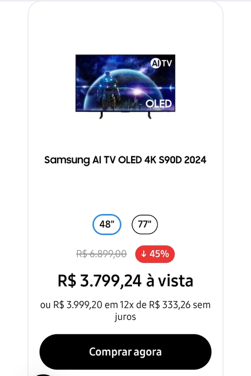 Vendo que a 55S90D está próximo dos 4500, não pegaria essa. Não só pelo tamanho, mas pelo fato dessa ser W-OLED e a de 55 QD-OLED. Se preferem W-OLED, vai numa C4 da LG.