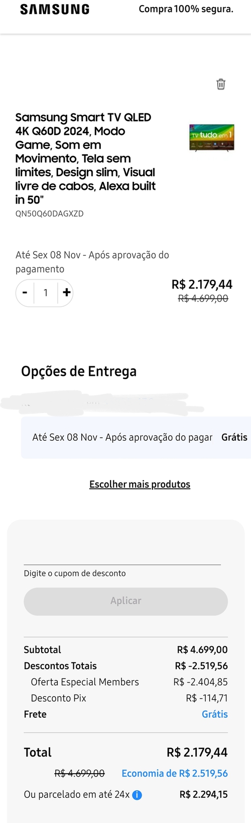 R$2.294 PARCELADO EM ATÉ 12X SEM jUROS OU 24X NO CARTÃO SAMSUNG