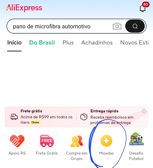 Após entrar na seção, procurar a oferta dos panos que estará na seção "usar moedas".