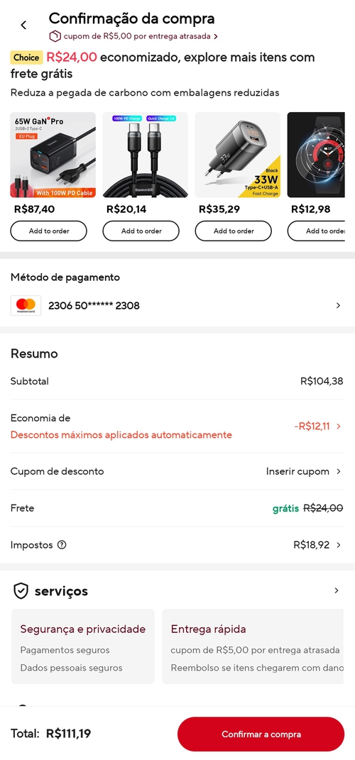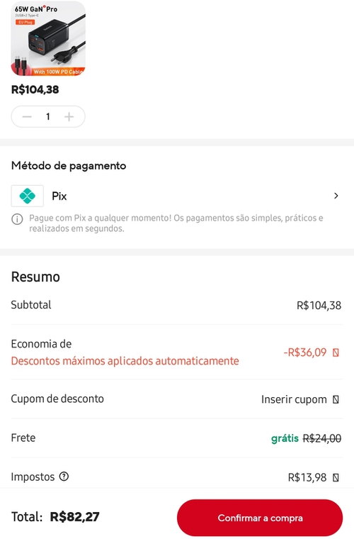 Foi aqui, pra quem não ta conseguindo coloca o do anuncio que custa 100 reais e não o de 80 , ai bate frete gratis.