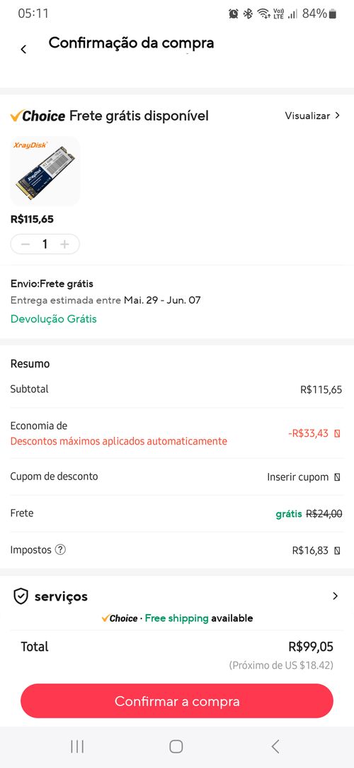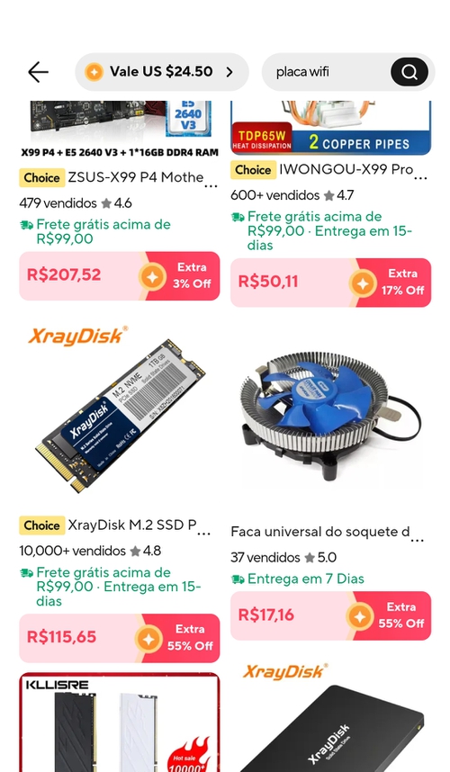 Aqui só chegou no valor usando pelo app e pelo link pt.aliexpress.com/i/1005005802879951.htm...e=620