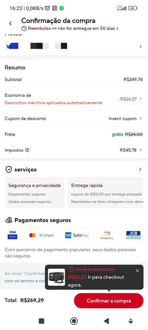 O meu tava dando 226, coloquei o cupom agora tá dando 270, tirei o cupom 270, reiniciei, 270 fod...
