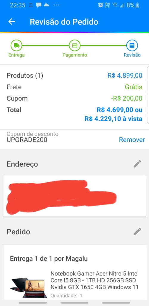 [APP] Notebook Gamer Acer Nitro 5 Intel Core i5 8GB