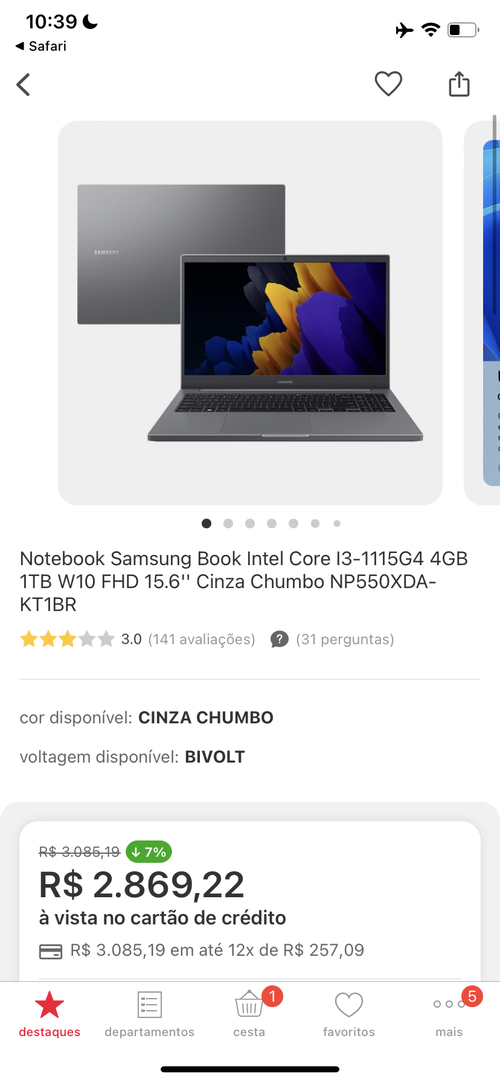 Paguei mais barato no meu Samsung Book com i5-1135G7 + 8GB DDR4 + 512GB SSD NVME.
