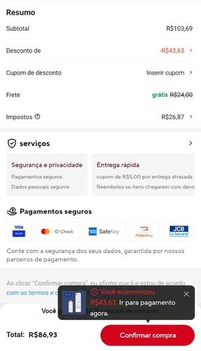 Compra feita com sucesso. Espero que dê tudo certo. Porque ultimamente está complicado importa.