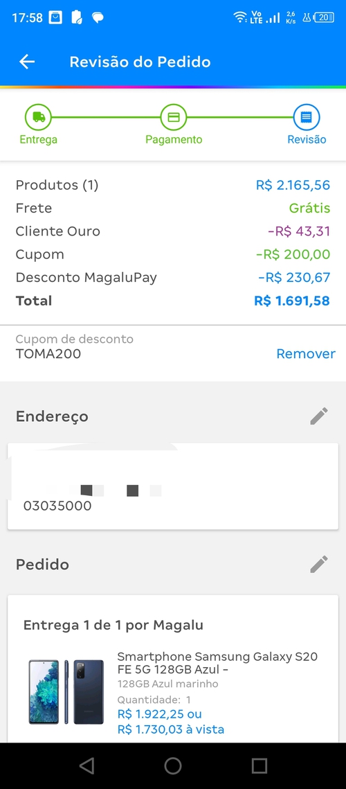 (App/ Ouro/Magalupay)Smartphone Samsung Galaxy S20 FE 5G 128GB