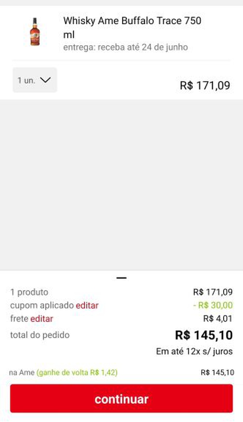[APP Parcelado] Whisky Buffalo Trace Bourbon 750ML | R$ 145