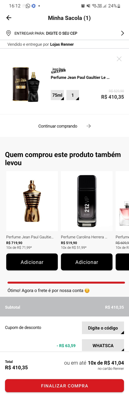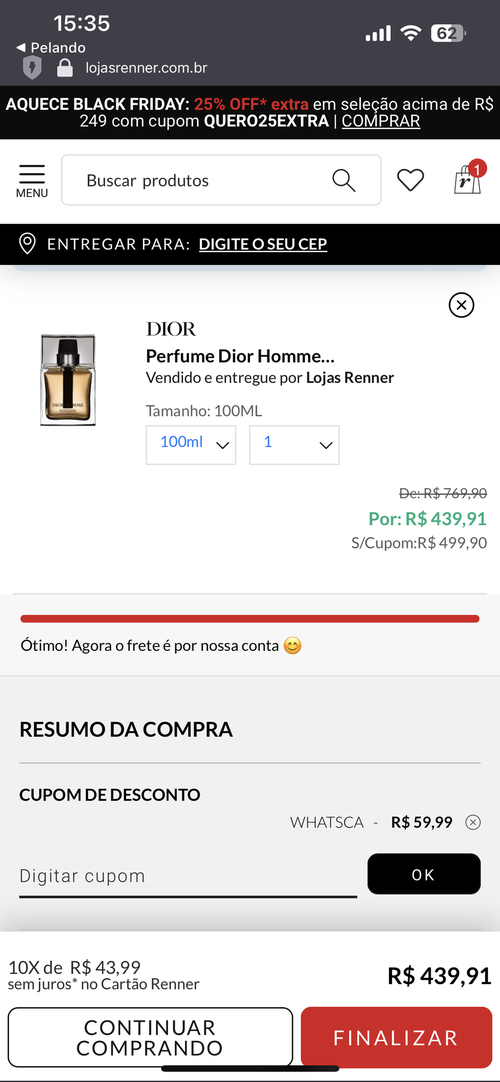 Aqui só dá erro o cupom e o perfume permanece em $499