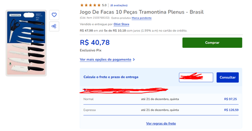 [APP/PIX] Jogo de Facas 10 PEÇAS Tramontina