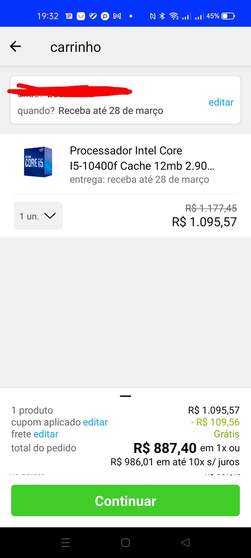 Se o link do Pelando não funcionar, pesquise no Google por 10400F, e quando aparecer o valor de 1.095,57 , clique no link que deverá direcionar para o aplicativo.