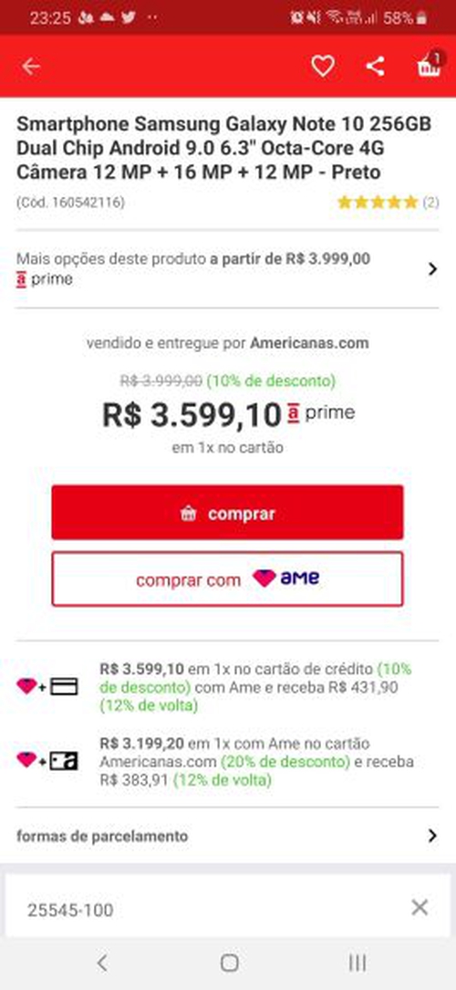 [APP - R$: 2 816 AME - C.C. Americanas] Samsung Galaxy Note 10 256GB