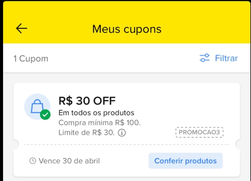 [APP] R$ 30 OFF acima de R$ 100 - Mercado Livre Brasil