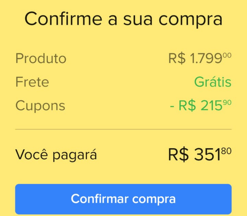 Conte também com a ajuda da nossa comunidade para localizar os vendedores corretos, para aplicar cupons e, claro, para fazer as melhores decisões de compras! Nosso time também está disponível no chat para tirar quaisquer dúvidas que possam surgir. Abraços!