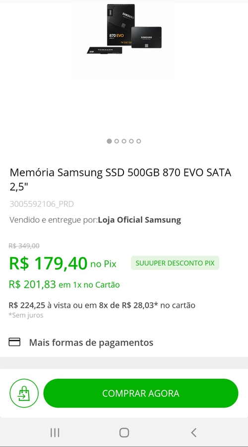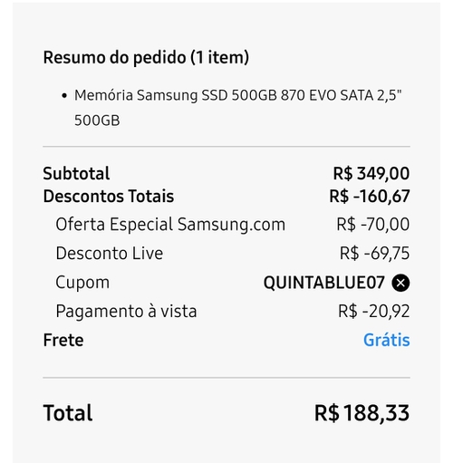 Até deu aqui, mas mano 188 por um ssd 500gb sata ? Tá valendo isso tudo só por ser Samsung ?