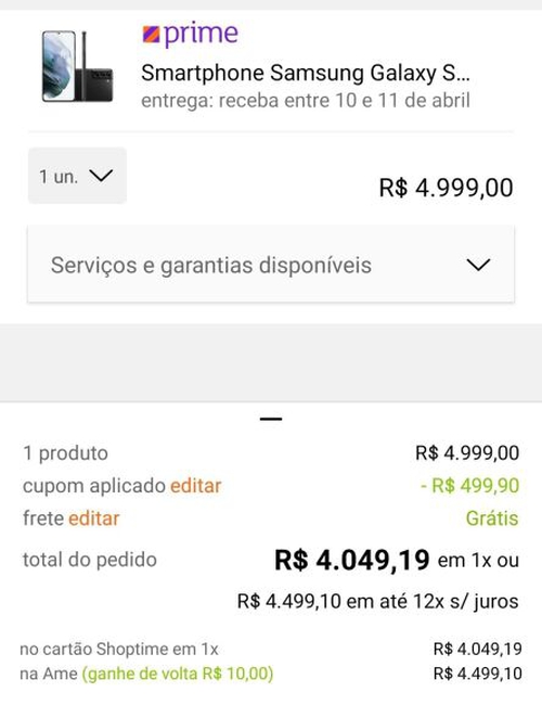 [APP] Smartphone Galaxy S21 Plus 5G 128GB | R$4049